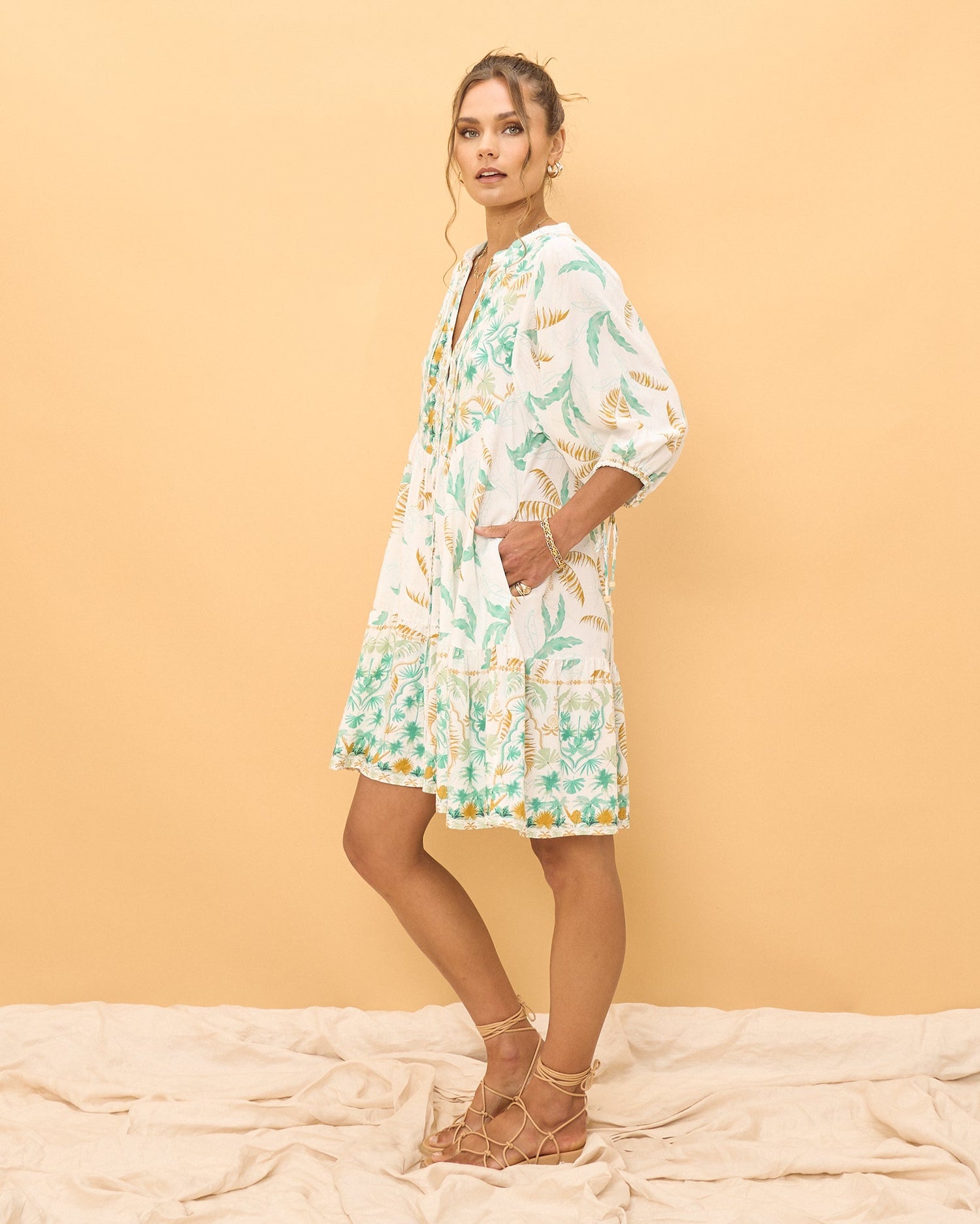 Wisteria Blue Floral Boho Button Down Mini Dress